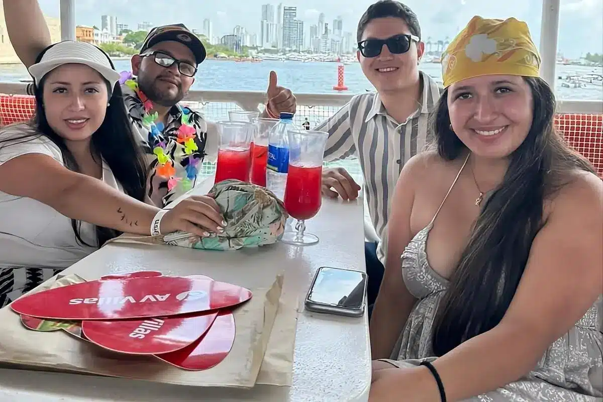 Cartagena posee uno de los atardeceres más bellos del Caribe. Desde el Barco Bequia, la vista se transforma completamente: el sol se refleja sobre el agua, los edificios históricos se iluminan con tonos cálidos y la brisa marina refresca el ambiente mientras navegas suavemente por la bahía.