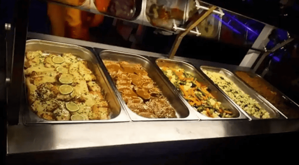 Cena Tipo Buffet, incluye mariscos y otras carnes.