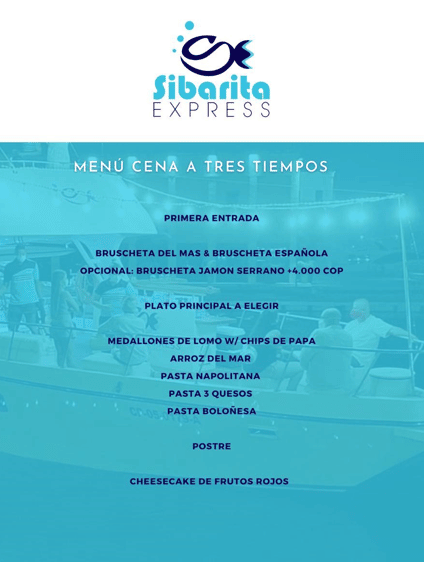Cena Sibarita Express plan nocturno navegando por la bahía de Cartagena con servicio de cena.