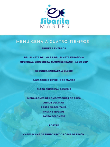 - Cena Menú servido (Entrada, plato fuerte y postre)