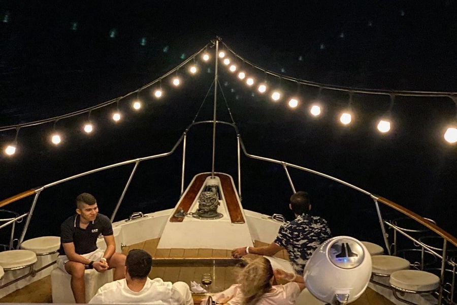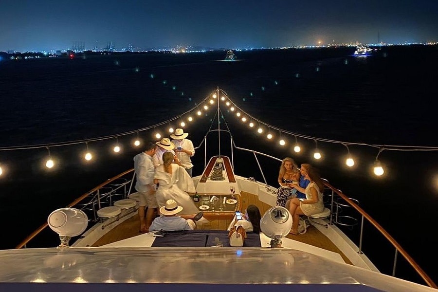 Mientras navegamos por la bahía de regreso a Cartagena, podréis contemplar el paisaje nocturno o bailar al ritmo de la música para despedir la noche por todo lo alto.
