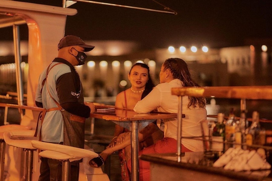 El paseo nos llevará hasta BocaGrande, donde la bahía se une al mar Caribe. Desde aquí tendréis las mejores vistas de la ciudad y podréis admirar las luces de los rascacielos y el centro histórico de Cartagena. ¡El entorno ideal para una cena romántica!