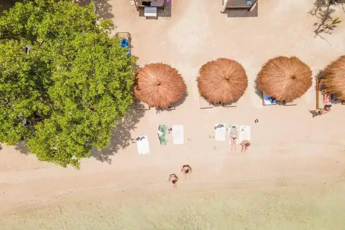 El almuerzo típico está incluido en el pasadía, y es uno de los momentos más esperados por los visitantes. Nada se compara con degustar un arroz con coco, pescado frito y patacones frente al mar, acompañado de una limonada natural o un cóctel refrescante.