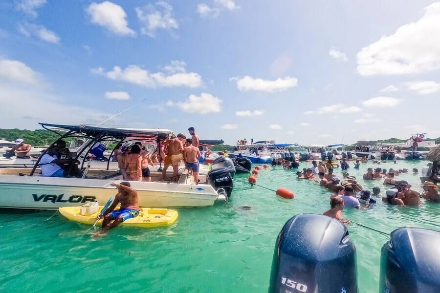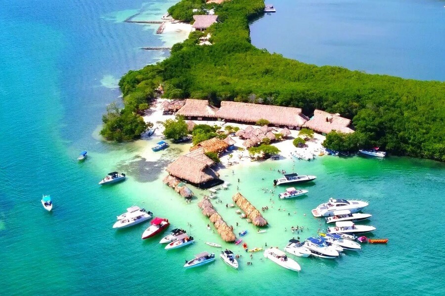 La Isla Cholón no es una isla común. Es el epicentro del entretenimiento marino en la costa norte colombiana. Cada día, decenas de embarcaciones —lanchas deportivas, yates privados y veleros de lujo— se anclan en sus aguas poco profundas, formando un entorno de celebración flotante donde el mar actúa como pista de baile y restaurante al mismo tiempo.
