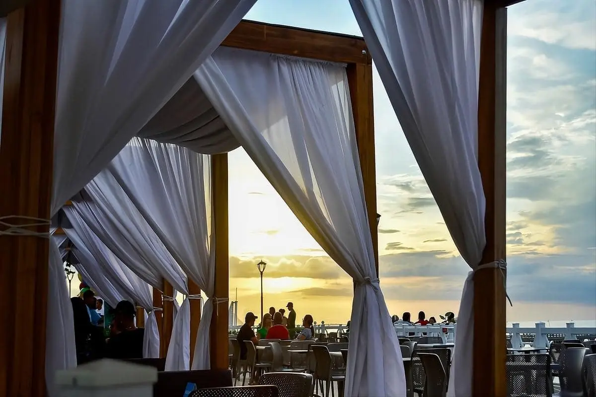Mientras el sol cae y el cielo se tiñe de tonos dorados, podrás disfrutar de un paseo relajado, escuchar música en vivo o simplemente contemplar el paisaje acompañado por la brisa cálida del Caribe.